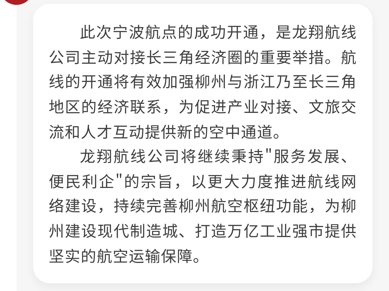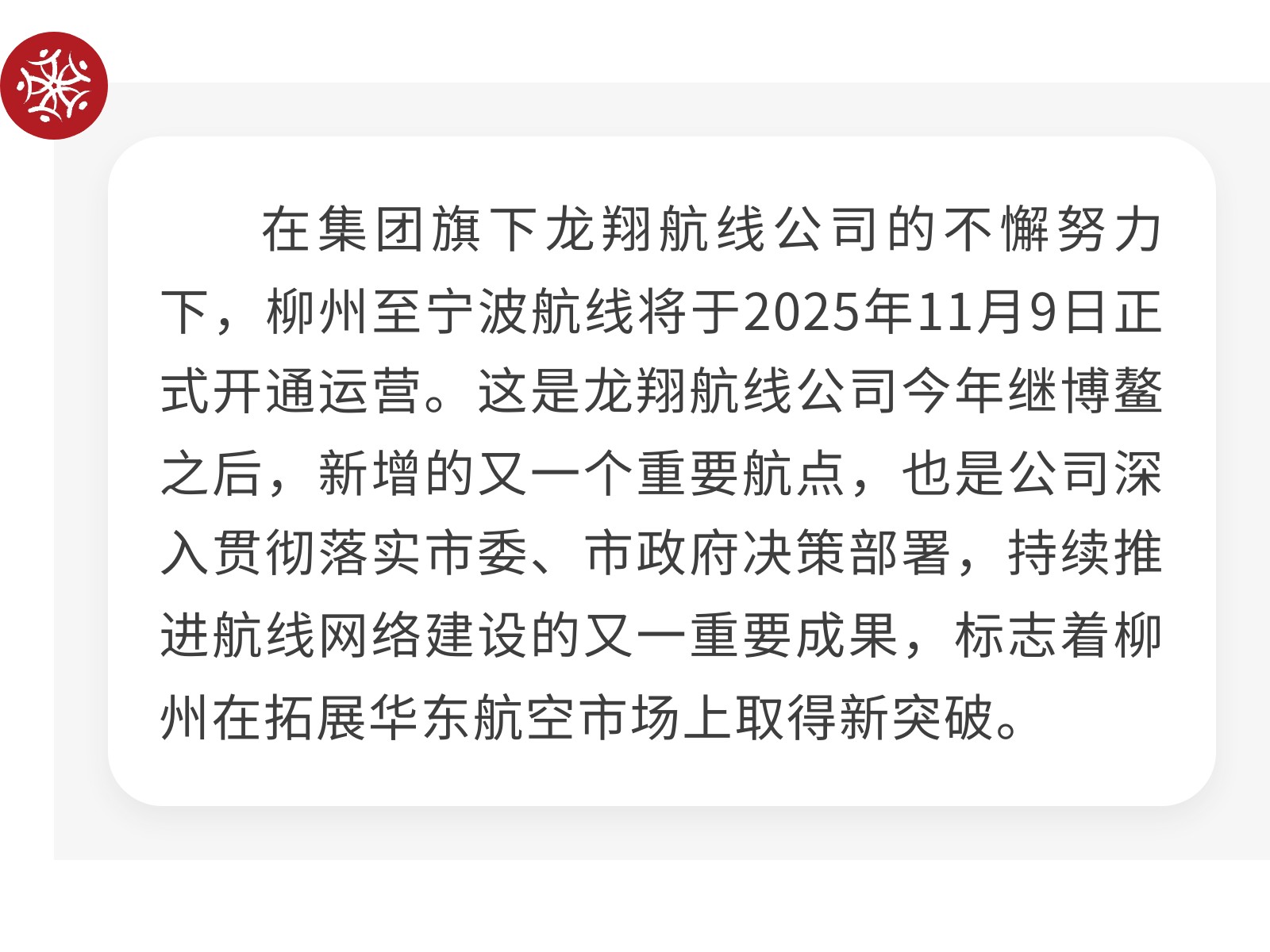 航線布局再突破!集團旗下龍翔航線公司成功開通寧波新航點 發(fā)布時間:2025年11月12日 11時來源:本站原創(chuàng)瀏覽:105 人次