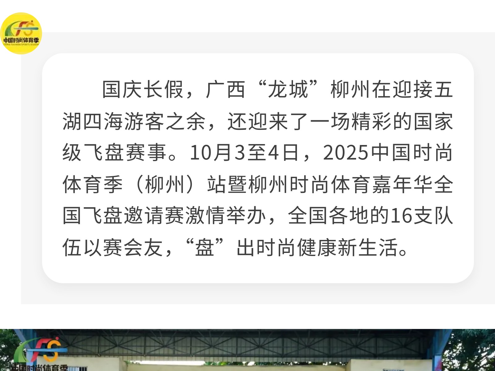 “盤”出時尚健康新生活,廣西柳州承辦國家級飛盤賽 發(fā)布時間:2025年10月05日 17時來源:本站原創(chuàng)瀏覽:26 人次